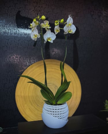 Nuestras macetas para orquídeas permiten una mejor circulación de aire y control de humedad, favoreciendo raíces más fuertes y flores más duraderas. El equilibrio perfecto entre cuidado y estilo.